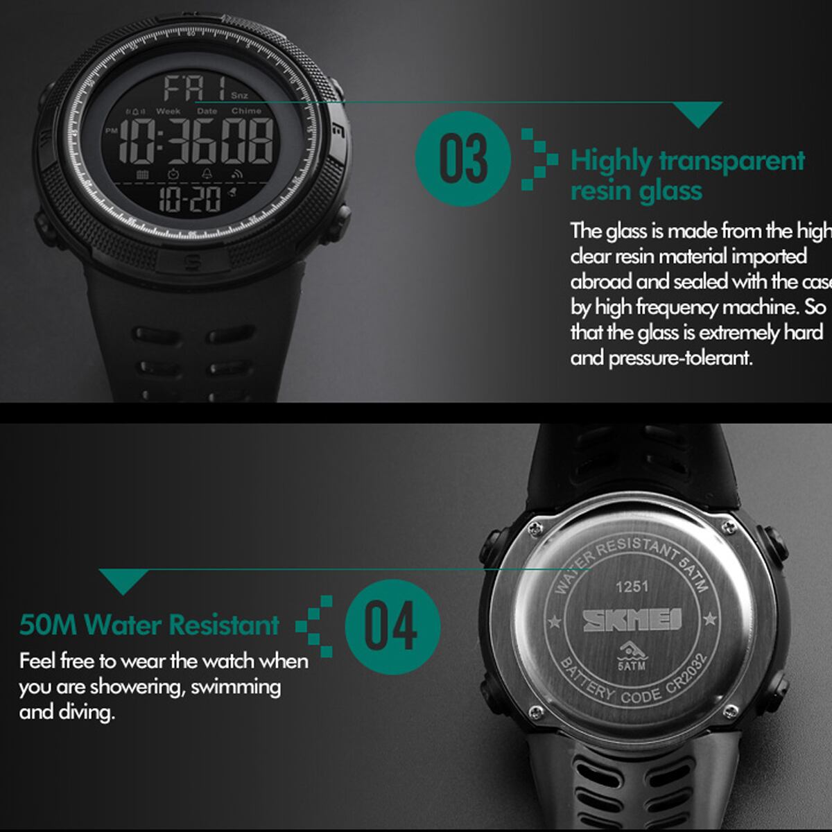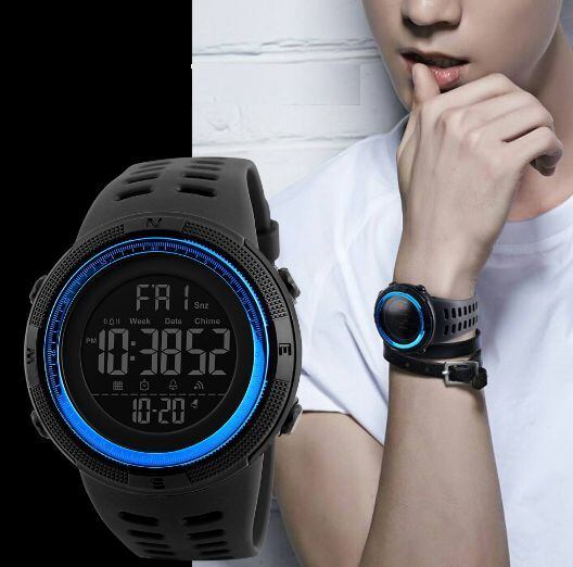 シンプルなデザインで、屋内でもアウトドアでも使用できるスポーツデジタル腕時計です。