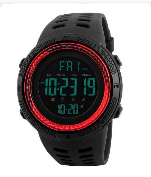 シンプルなデザインで、屋内でもアウトドアでも使用できるスポーツデジタル腕時計です。